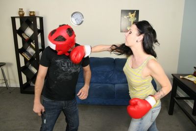 Blonde bombshell Dia is one tough bitch. She waits for her opponent to arrive as she warms up. She doesn't wait one second to start punching Kid right as he arrives. She punches him on the head over and over again and then does the same thing to his stomach. She doesn't have a water boy so she makes him her foot boy instead. She forces him to smell her stinky, sweaty tube socks as she smothers his face.